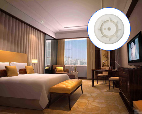 在每個房間設置感煙探測器,感煙探測器的數量計算參照《火災自動報警系統設計規范》,一個感煙探測器的大保護面積可以達到80平方米。走道電梯前室等地也應布置感煙探測器。探測器的布置原則應滿足在寬度小于3m的內走道頂棚上設置探測器時,宜居中布置。感煙探測器的安裝間距不應超過15m;探測器至端墻的距離,不應大于探測器安裝間距的一半。
