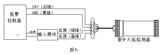 (4)JTGB-ZW-1501型核中警防爆紫外火焰感光探測器安裝接線示意圖(見圖9)